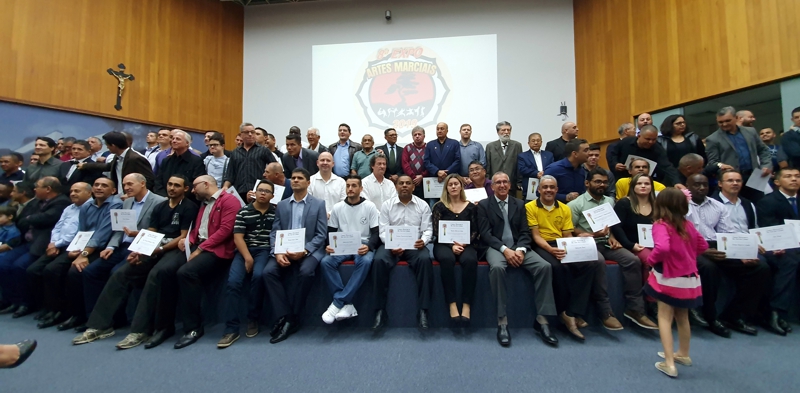 O evento reuniu cerca de 150 professores e mestres de diversas modalidades marciais como, kung fu, taekwondo, Jiu jitsu, judô, capoeira, karatê, aikido, boxe, sanda. Si-Fu Robson Nobre, professor e representante da Associação Pak Shao Lin na cidade, foi um dos homenageados. Um reconhecimento merecido para um excelente profissional, que atua como professor desde 1995 com muita competência e seriedade no ensino do kung fu. |